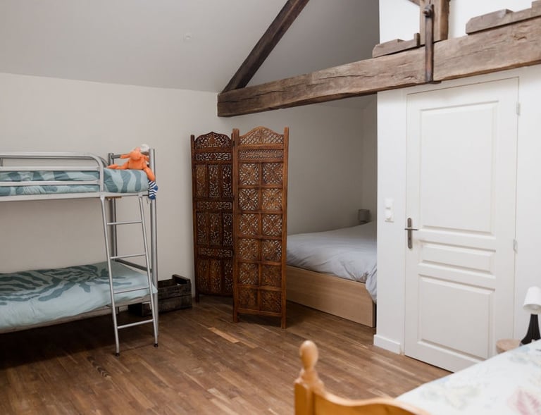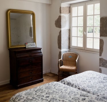 Similaire à la chambre verte, elle dispose de deux lits simples de 80x200, qui peuvent se rassembler pour former un seul lit queen size